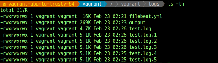 6. filebeat에서 파일을 읽고 있을 때, log rolling이 정상적으로 일어날 수 있어야 함. -> 테스트 log4j rolling property MaxFileSize=5KB, MaxBackupIndex=5 -> 정상적인 상황 -> filebeat를 실행해놓은 상황