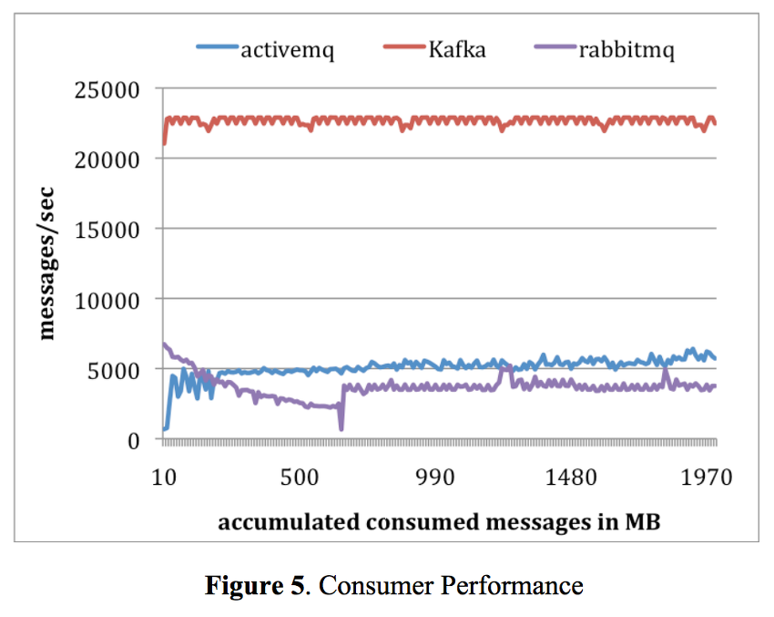 범용 메세지 큐(RabbitMQ, ActiveMQ)에 비하여 성능적 우위를 가지고 있음.