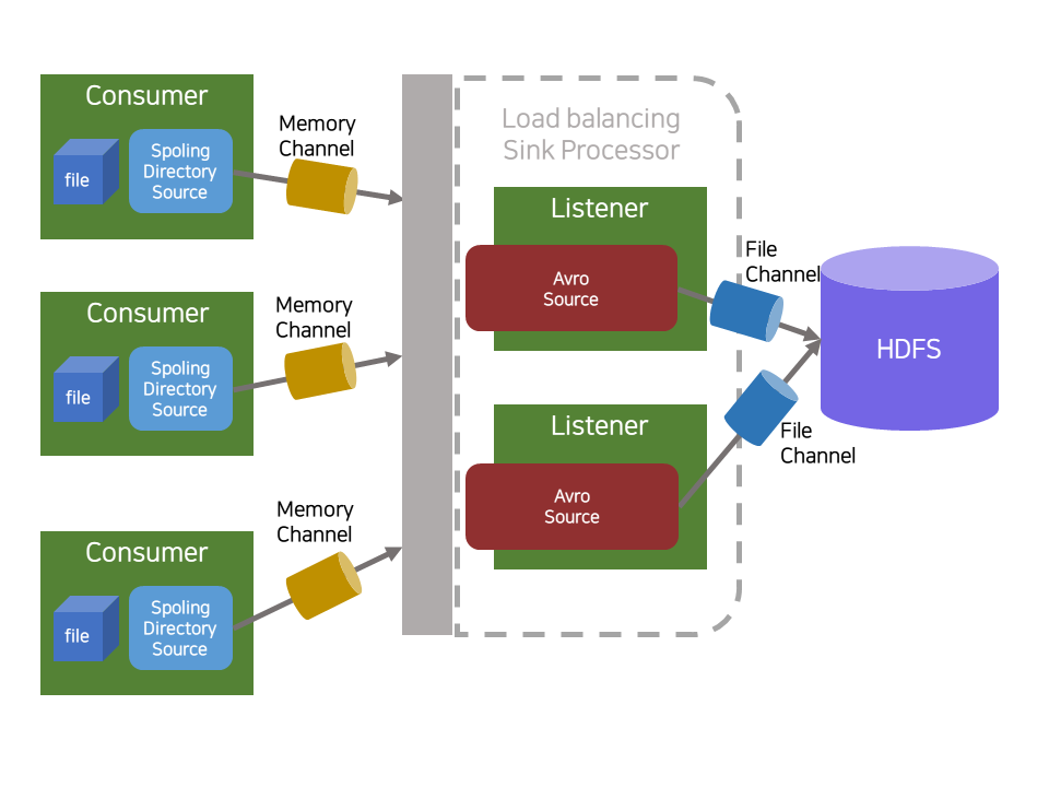 Spooling Directory Sources --- Memory Channel ----> Avro Sink (Load balancing Sink Processor)