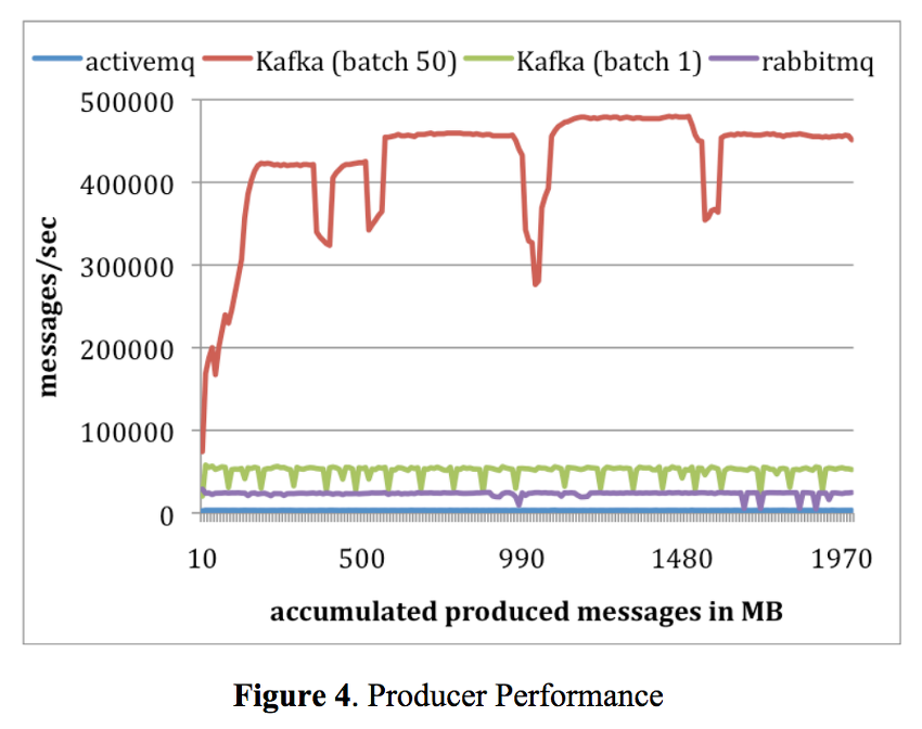 범용 메세지 큐(RabbitMQ, ActiveMQ)에 비하여 성능적 우위를 가지고 있음.