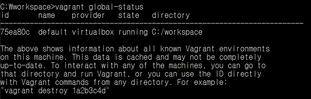 1. vagrant environment ID 찾기